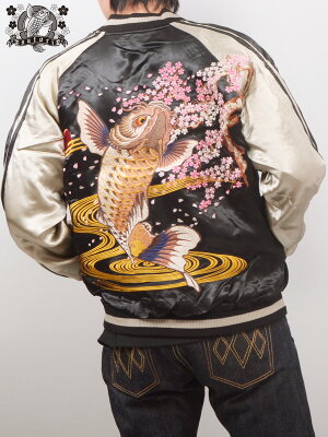 花旅楽団 さとり satori 豪華総刺繍 鯉の滝昇り リバーシブル 和柄 スカジャン 限定生産 ブラック GSJR011【1,000円引きクーポン発行中】送料無料 ジーンズ メンズ【あす楽】通販 ポイント プレゼント 人気 おすすめ ジャパネスク JAPANESQUE