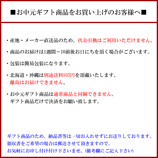 お中元ギフト商品をお買い上げのお客様へ※直送品のため代金引換はご利用できません。